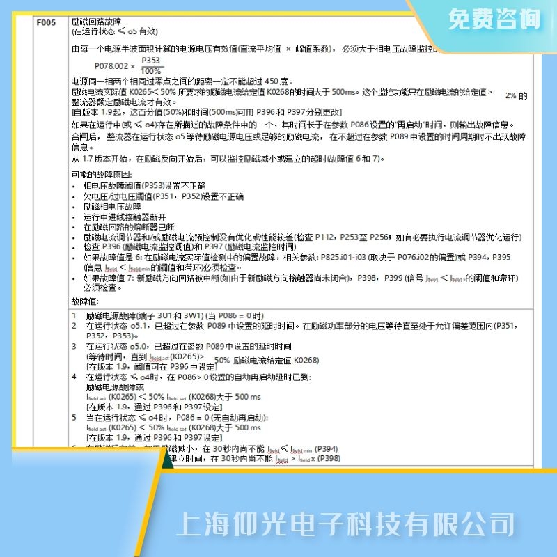 上海西門子直流調速器維修電話-仰光電子維修公司。免費檢測,免費咨詢,24小時熱線電話:13817011982,上海西門子6RA系列直流調速器報F005維修,上海西門子6RA系列直流調速器報勵磁回路故障維修: